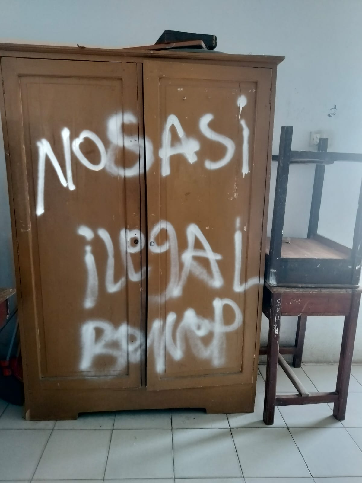 Pelaku saat menjalankan aksinya, menuliskan kata-kata tidak senonoh menggunakan pilox di dinding ruang kelas, lemari samping aula serta lantai ruang tunggu. Secara eksplisit tulisan itu diduga ditujukan kepada Kepala Sekolah.